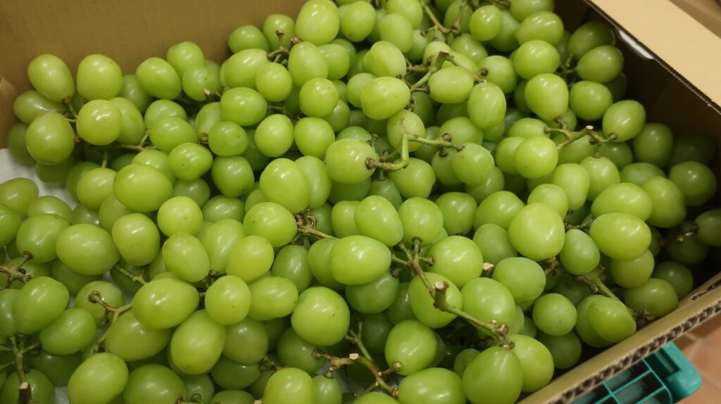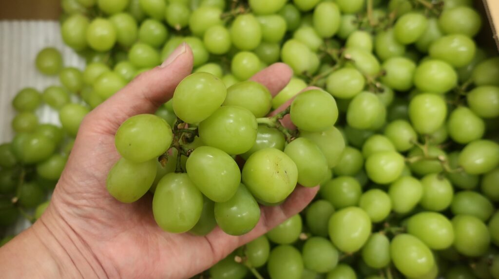 小森さんのぶどうがそろそろ終わりで、昨年から扱っているプレイストジャパンさんから届いたシャインマスカット。