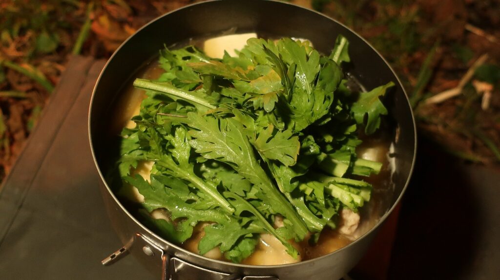 火が通ったら仕上げに春菊たっぷり。