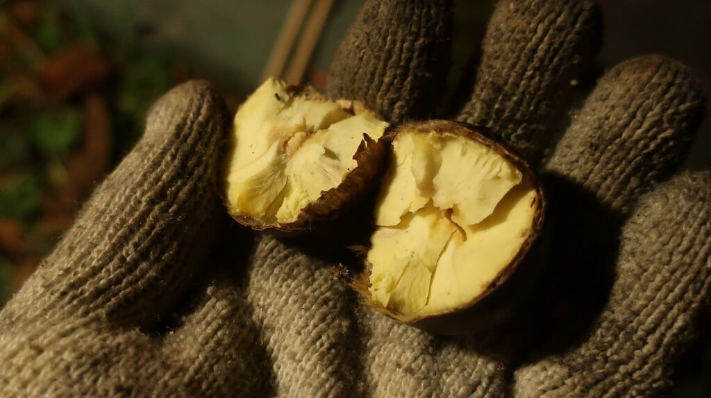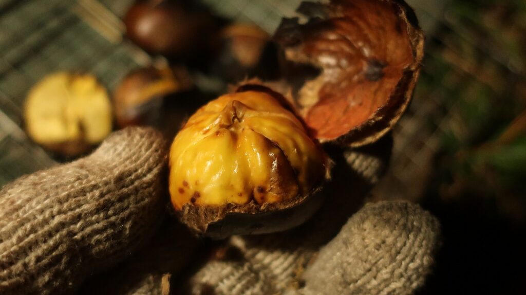 この栗、収穫して数週間冷蔵保存しているので、糖度が増しています。