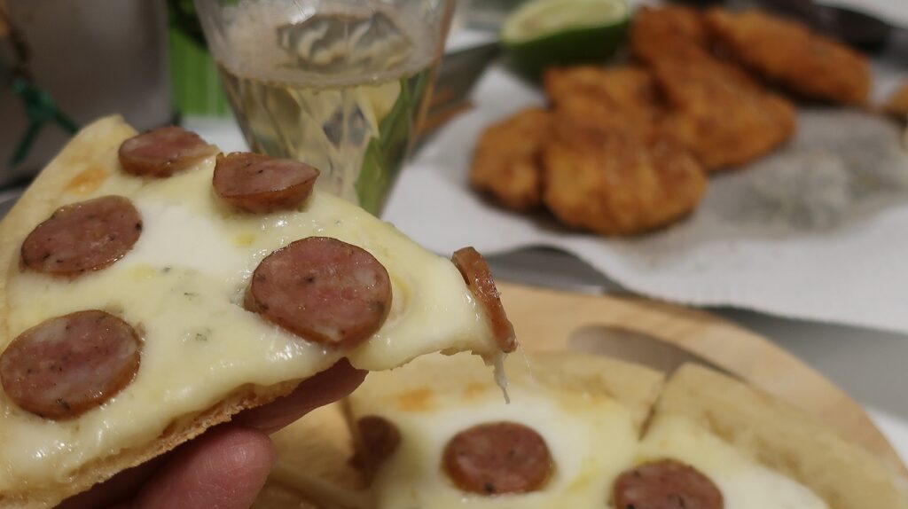 フライドチキンとスペシャルなピザ、そしてワイン。