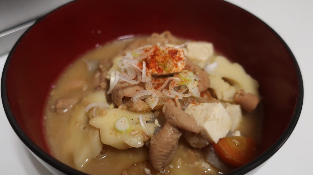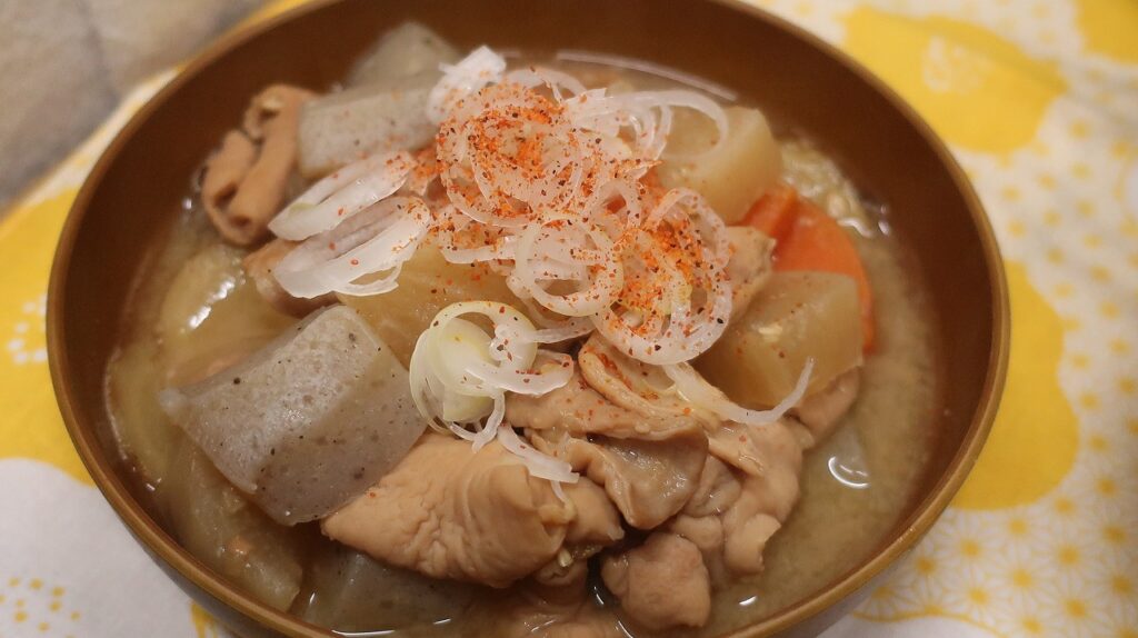 味噌は加藤さんの籾発芽玄米味噌、その他、あごだしや味の母など。