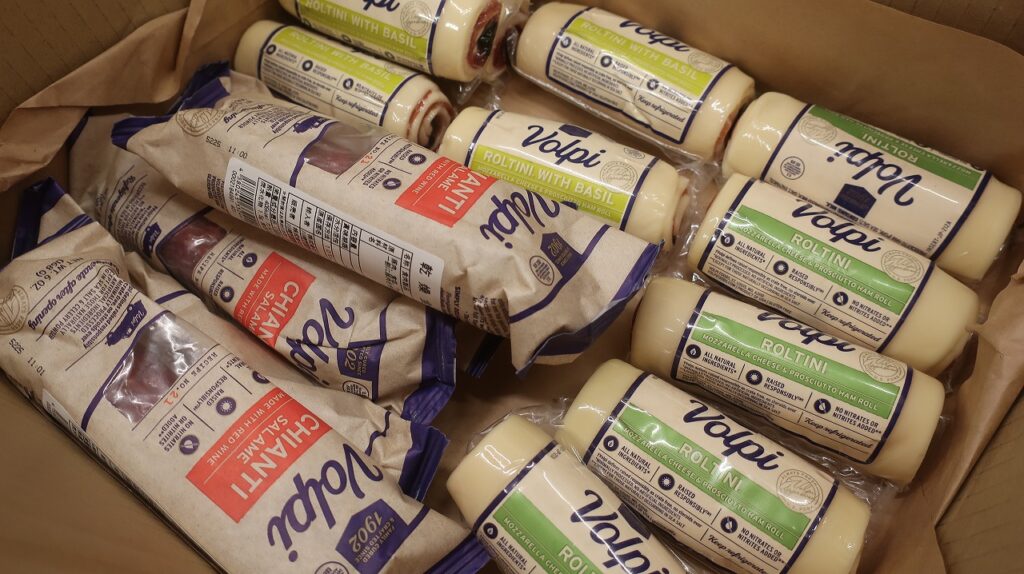 ロルティーニのプレーンとバジルの2種、そしてワインサラミ。