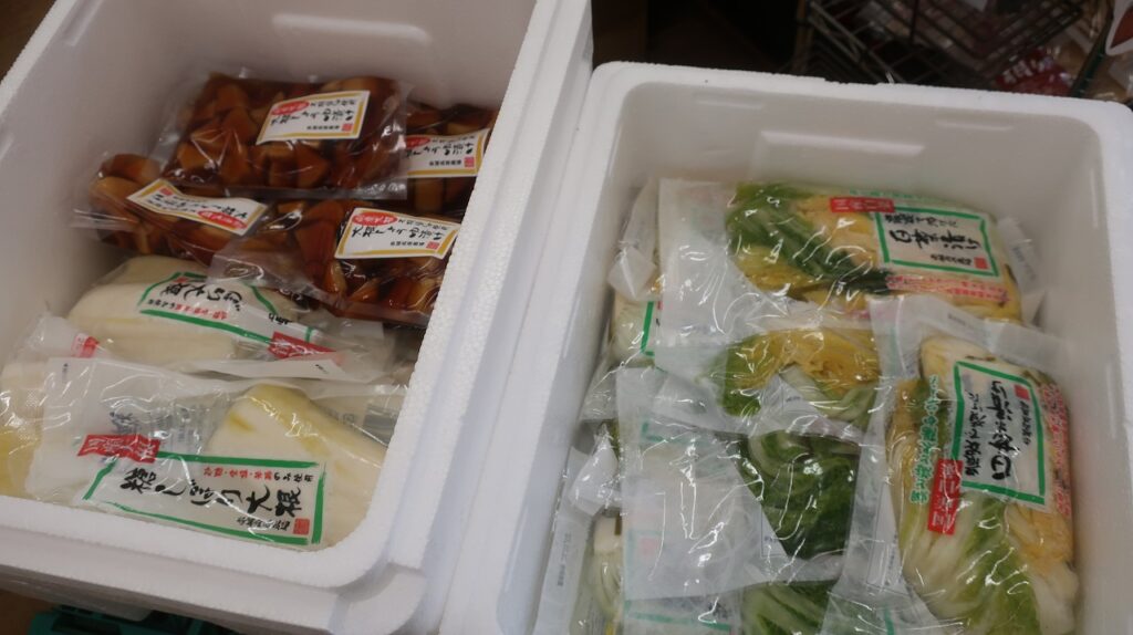 白菜漬け、糖しぼりだこん、大根醤油漬け。