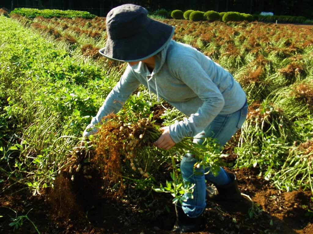ちなみに、もう随分前になりましたが、絹子が香取さんの畑に行って落花生を収穫させてもらった時の写真。