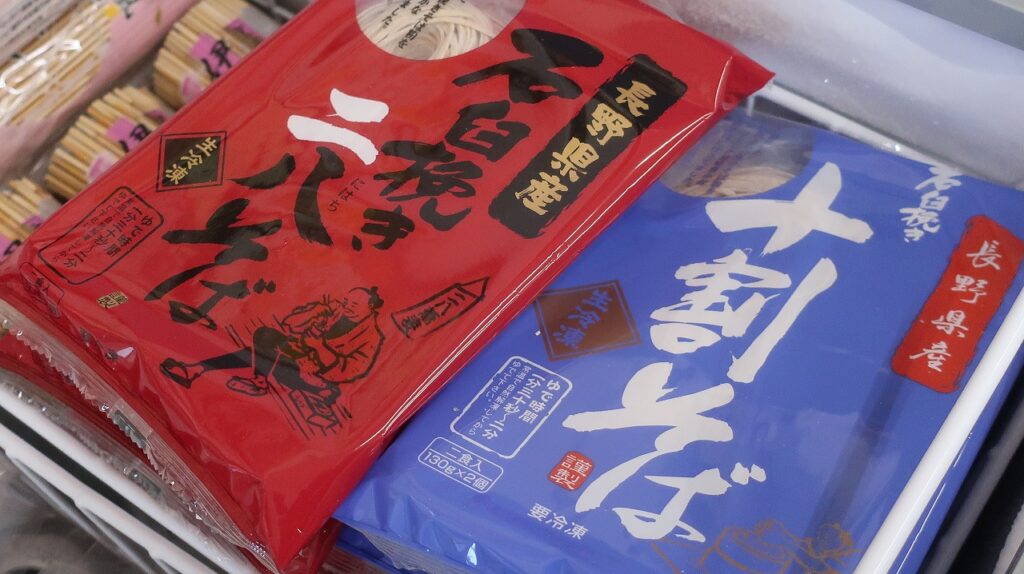 冷凍コーナー、前にも紹介した山本さんの十割そばと二八そば。