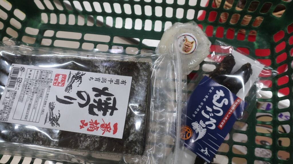 で、買ったのは新物の焼き海苔、ムツゴロウの干物、干潟もち。