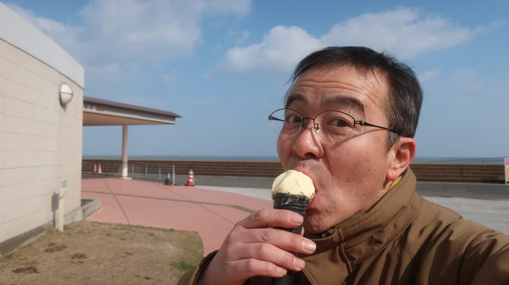 外の気温5度位、寒くて風も強く、とてもアイスを食べる気分じゃなかったけど、これだけは食べないと帰れないとです。