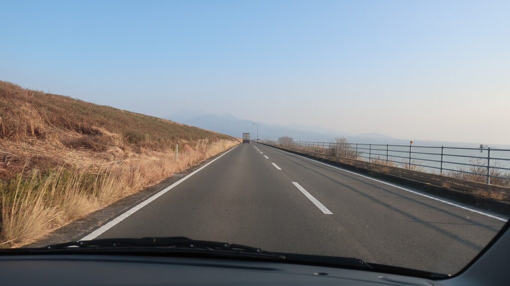 奥の方がこれから向かう島原で山も見えます。