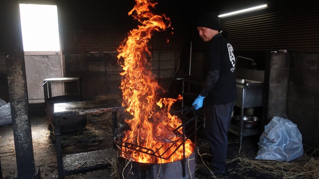 世間ではちゃんと藁で焼いているタタキも少ないけど、その中で藁で焼いていても実は中国からの輸入藁がほとんどだとか。