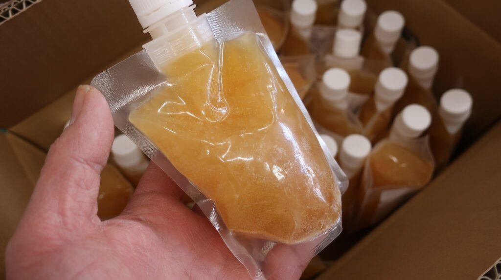 以前は瓶入りでしたが、今回はパックの冷凍。