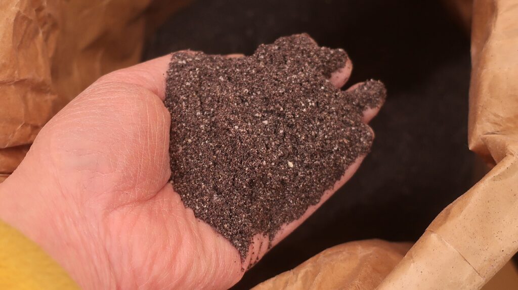 黒米の糠で、精米した黒米は確か水飴の業者に渡っているとか。